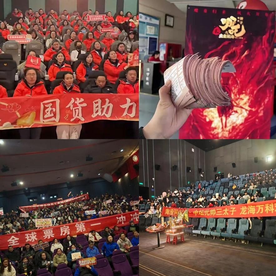 据说现在已经进入团战阶段,不仅有学校、部队、企业组织集体观影,还有网红达人包场请福利院小朋友,甚至请“满天神佛”看哪吒~