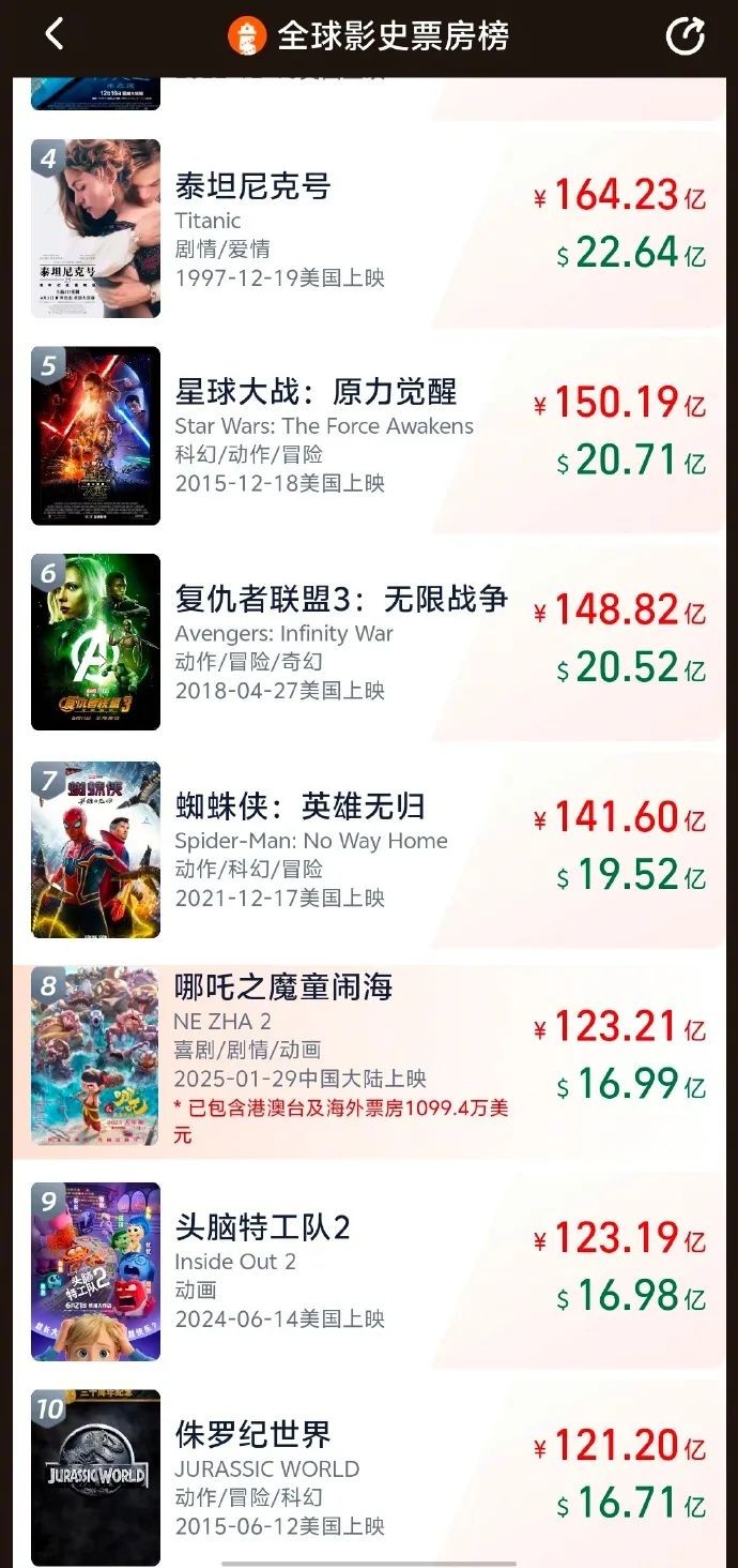 《哪吒2》直接打破了这种垄断,成为全球影史前50中唯一一部“非好莱坞动画电影”,不仅是中国的骄傲,更是整个亚洲的荣耀。