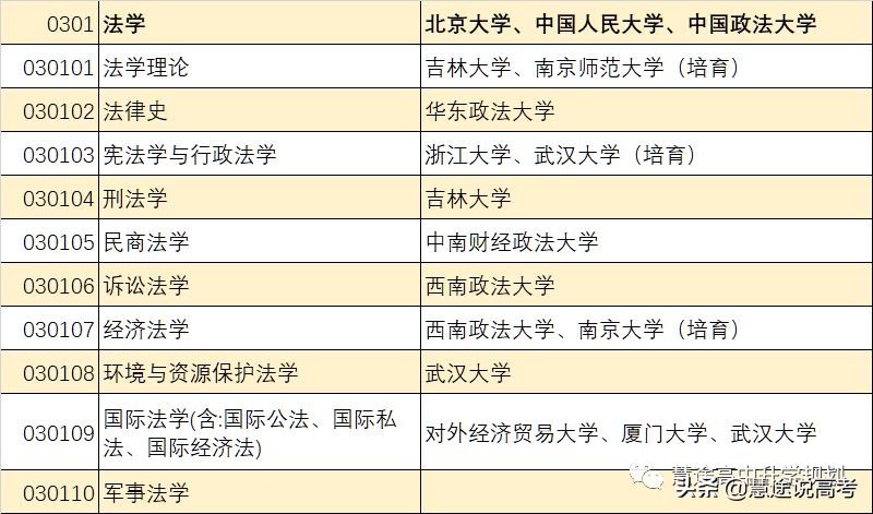 下表是“法学”的一级/二级国家重点学科院校名单。北京大学、中国人民大学和中国政法大学等3所高校拥有“法学”的一级学科国家重点学科。