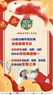 《谁知盘中餐》表现出了稳定且持续上升的高位口碑态势,节目中劳动、教育、节约、二胎相处等话题都引发了大众极大的共鸣,掀起了一番热潮。节目荧幕影响用数据说话:第五期59城市场份额夺得当晚全时段全国所有频道的所有节目第一名,全国城域00后、90后、70后同时段所有频道第一,索福瑞全国网、索福瑞全国城域、欢网、酷云、尼尔森网联、5网省级卫视第一,其中全国城域90后份额6.98%,忠实度46.6%,到达率、收视、忠实度、市场份额全部上涨!