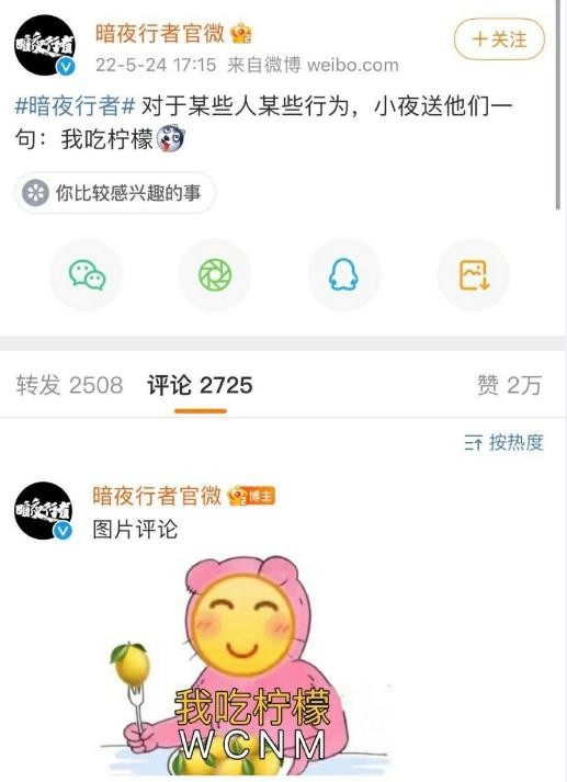 同日傍晚,李易峰主演的新剧《暗夜行者》官方微博疑似对此次水军刷差评的行为作出回应,称“对于某些人某些行为,小夜送他们一句:我吃柠檬”,并在评论区附图“我吃柠檬”(该图具有骂人含义),截至发稿,该回应在官微中已经不见踪影,疑被删除。