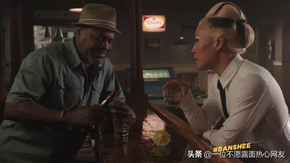《Banshee:黑吃黑》是由Cinemax电视台推出的重口味犯罪剧,叙述一位身怀绝技的大盗,经历15年牢狱之苦后,为了往日旧爱不惜冒着被仇人追杀的风险,盗走Banshee女巫镇的新任警长的身份,力挽狂澜旧情人的同时,卷入了当地黑帮势力的险恶斗争。总体来说,这部剧大有《让子弹飞》的意思。