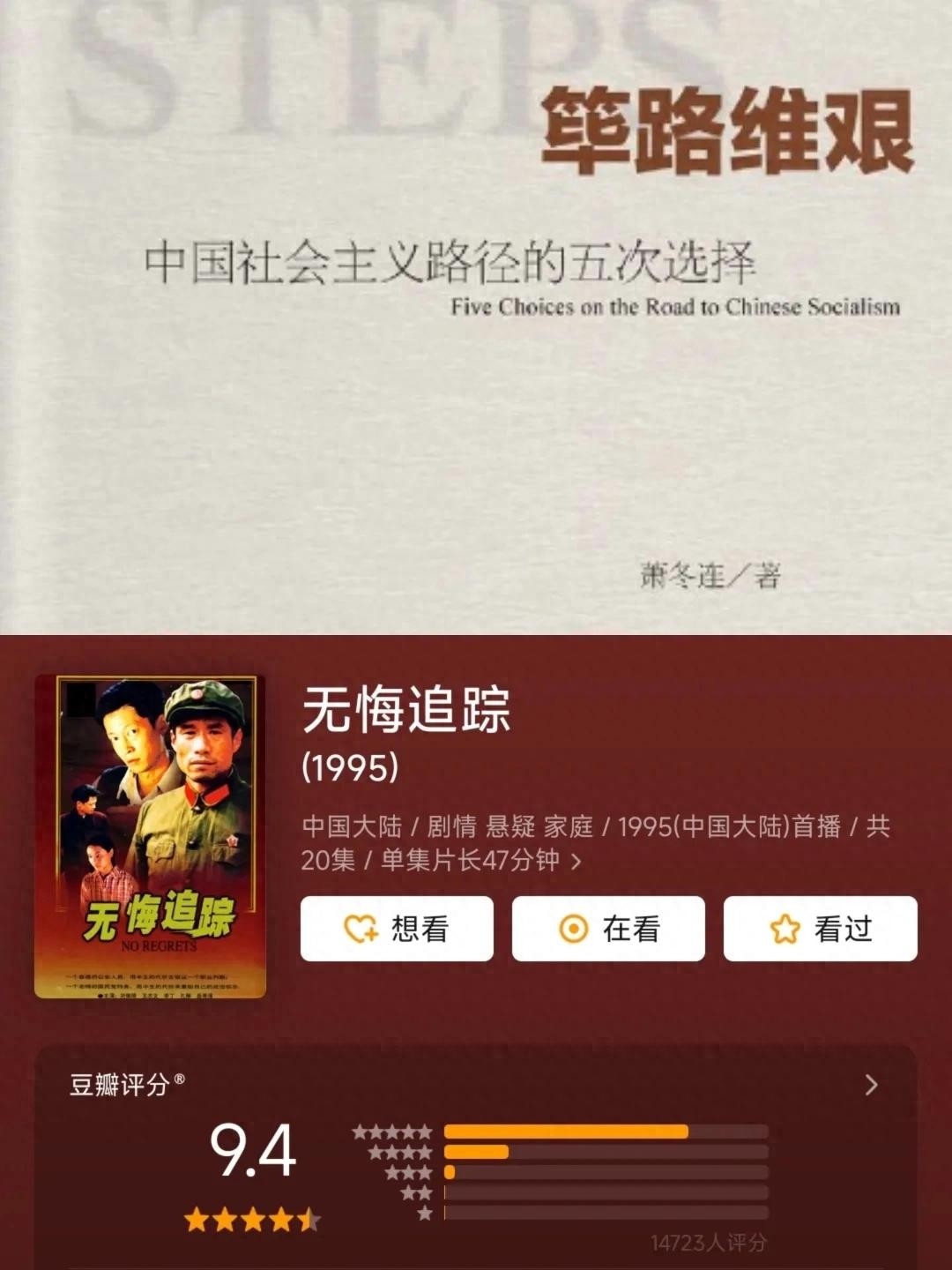 最近看了一部9.4高分年代剧《无悔的追踪》和一本神作书《筚路维艰》,95年上映和14年出版。30年前的影视作品,把建国近40年的历史进程做了总结。而14年出的书用10多万字同样是一本袖珍版的“党史”。影视作品是艺术加工后演绎,像是把这本《筚路维艰》当成了剧本,话说都是从1949年建国之初开始。