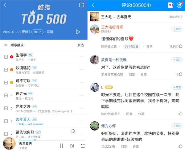 1月13日,萌妹女神王大毛空降酷狗直播间安利新歌《我会陪着你》,不仅献上超级hit曲《去年夏天》live,更自曝艺名“王大毛”的来龙去脉和校园趣事,吸引近3万网友同时在线打爆电话!