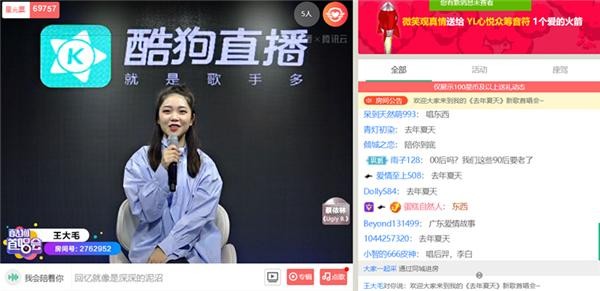 直播一开始,就有歌迷陆续进入直播间抢占前排靓位帮忙安利新歌!大毛瞬间被网友们的热情感染了,一问才知道是酷狗直播和酷狗音乐实现联动,在酷狗音乐听歌也可以收到开播消息,一键进入首唱会,为喜爱的主播打call零时差~这个功能不仅拉近了粉丝和爱豆的距离,也让爱豆的曝光率大大提高,真的要给酷狗工作人员加个鸡腿!
