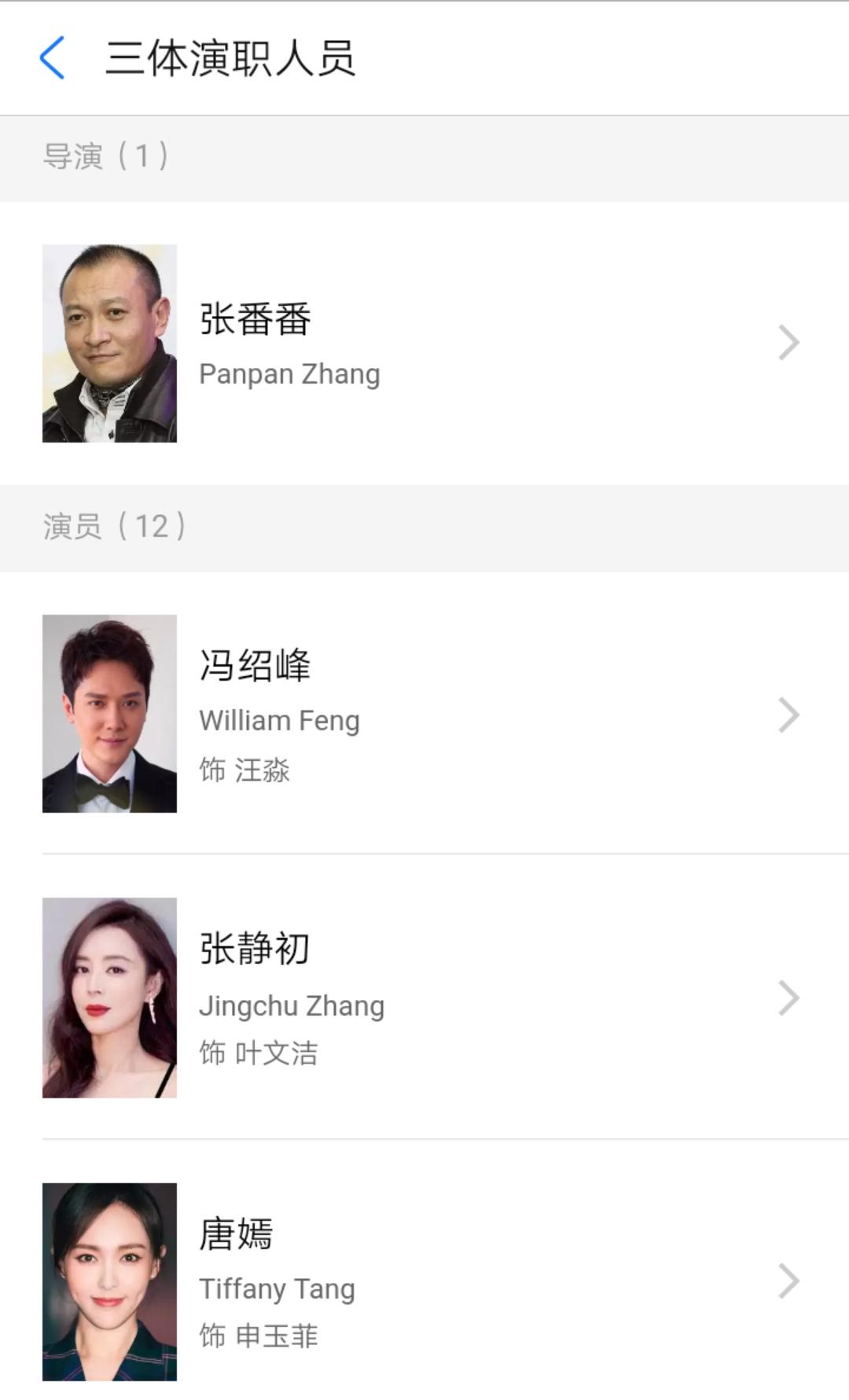 在这个APP的“即将上映”榜单中,上面显示《三体》将在2020年上映。不知道是商家的恶作剧还是他们已经获得了官方的内部消息,小帅打开页面确认了一下。“2020年,很多科学家死于非命,……”像这样的剧情介绍,然后往下拉,看到了比较详细的主演名单,这在之前的《三体》官方发布信息里是从来没有过的。