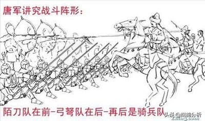 唐朝开国名将李靖在其《卫公兵法》中对于唐军排兵布阵之法进行了详细的解读,有关步卒排阵大致如下,盾牌兵在前,弓弩手随后,再次步卒列阵,骑兵分左右厢。这种布阵之法基本延续了前人之所创,阵战中,盾牌兵在前主要掩护弓弩手前出压阵、远距离攻守,步卒一般在实际冲锋之时,方才越过盾牌兵和弓弩手前出作战。