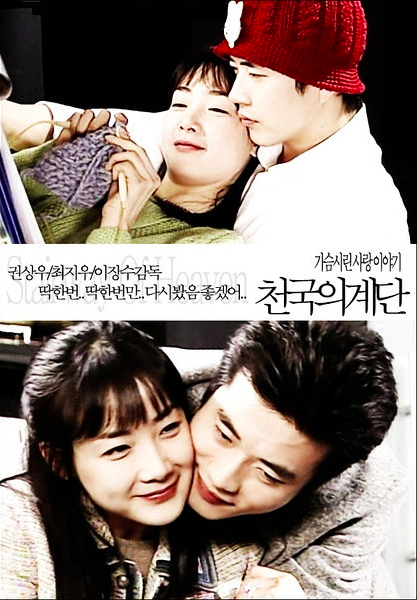 《天国的阶梯》由权相佑、崔智友、金泰希、申贤俊等人主演,2003年12月3日在韩国首播。讲述一对青梅竹马在面对恶毒的继母和继姐妹、失忆、四角恋、女主角的不治之症等重重阻碍仍彼此深爱。
