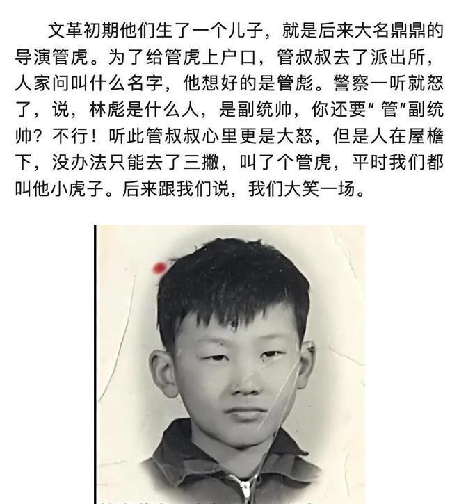 1968年,演员管宗祥诞下一子,他本想为儿子取名“管彪”,却不想遭到为难,于是只能退而求其次,去掉了“彪”字的三点水,改为管虎。