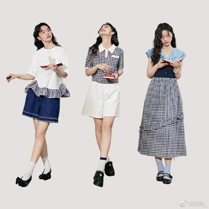 裙子往往都是高腰的设计,适合搭配短款的上衣,拿捏上短下长的穿搭技巧,轻松穿出高高瘦瘦的身形,上衣可以搭配可爱一些的衬衫,会更加减龄,也有一点日系风,也很乖巧呢,简直就是一套日常百变的着装呢!