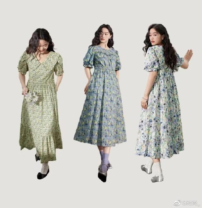想要穿出唯美可人的风格,就一定要试试小碎花的连衣裙,裙身上布满花朵,浪漫又有意境,夏天就是要多尝试色彩不一样的小裙子。