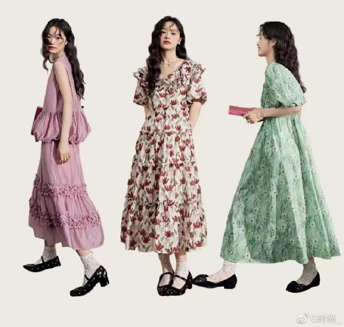 清纯淡雅的连衣裙也穿出了女生清冷的气质,搭配小皮鞋来穿也有几分复古呢。