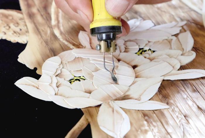 用烙铁在麦秆上烙出需要的颜色和图案