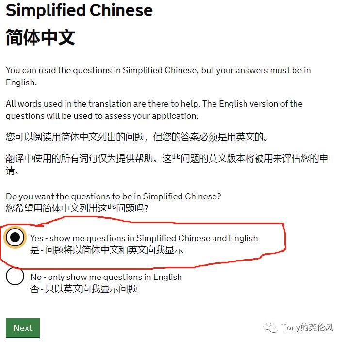 2. 根据需求选择问题需要出示的语言,此处以中文为例(选择Yes)