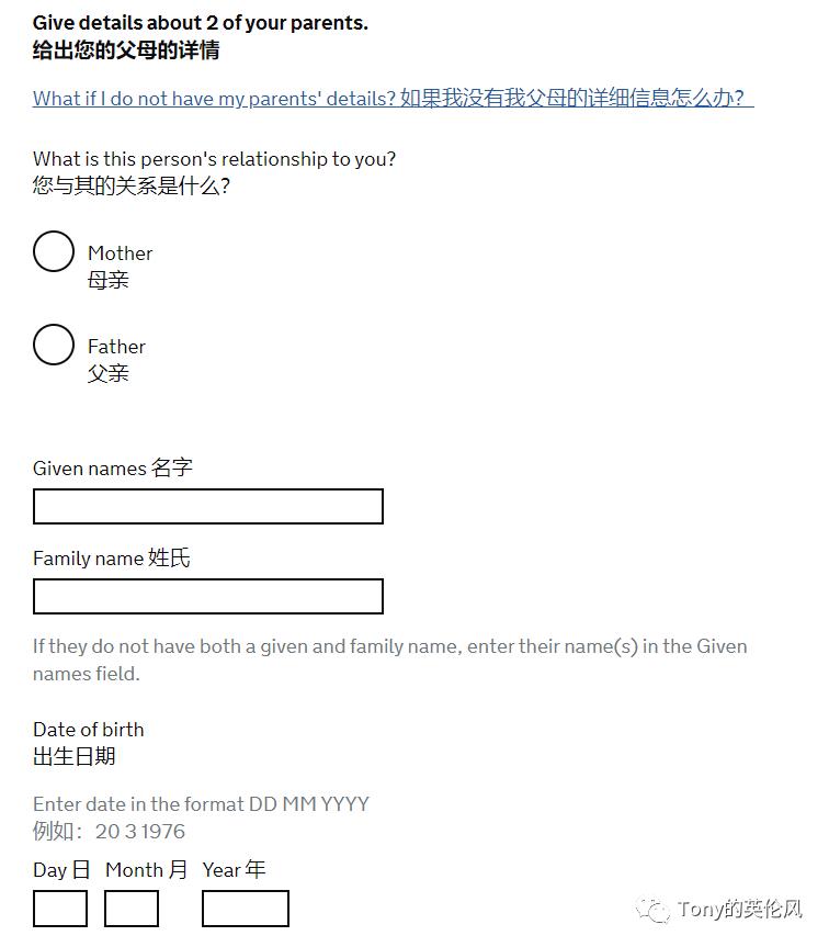 37. 填写父母信息