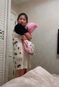 这时候,爸爸刚好准备睡大觉。只见女儿抱着专属枕头,轻手轻脚地走进了房间。一看爸爸还没睡觉,直接喊了一句:“爸爸,妈妈不在家,我要跟你睡”