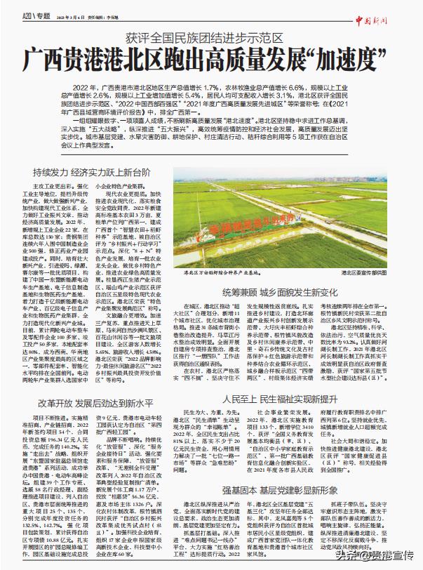 3月5日、3月6日、3月7日,《中国新闻报》刊登贵港市平南县、港北区、港南区发展成就。