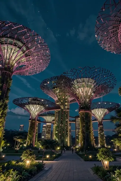 这个令人惊叹的公园包括巨大的人工树木,称为“超级树”,以及美丽的花卉和植物。夜晚时分,树木会亮起灯光秀。