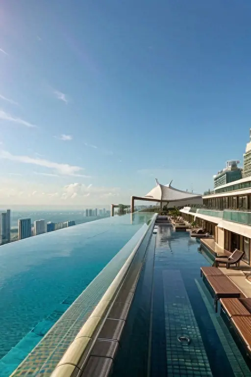 这个综合度假胜地包括豪华酒店、购物中心、餐厅和世界上最大的无边际泳池。从酒店的顶部,游客可以欣赏到城市的壮丽景色。