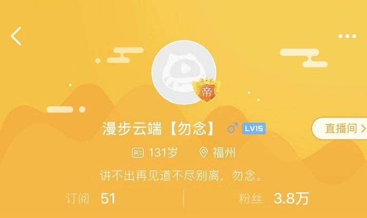 他自去年底虎牙星盛典开始崭露头角,累计消费数千万,主播们看到他第一眼就会高喊皇上;他被称为虎牙3.0时代的土豪,继天机、烟雨楼之后称霸众神豪;他因为祥云事件失望退出江湖后,网友纷纷在各大直播间刷屏——“虎牙再无神豪”。他,就是虎牙曾经的神豪漫步云端。