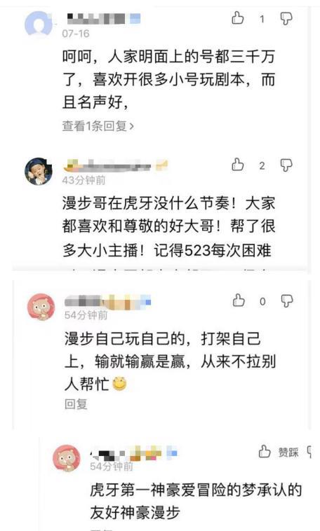 在这里,好性格的漫步哥积累了不少人缘。不管进到哪个直播间,公屏上第一个出现的字就是象征着欢迎漫步哥的“寸”字。不与人结仇的漫步云端在虎牙几乎没有发生过什么不愉快的事情,唯一的一次就是为了自己朋友的鲁莽而主动向烟雨楼梦哥讲和。