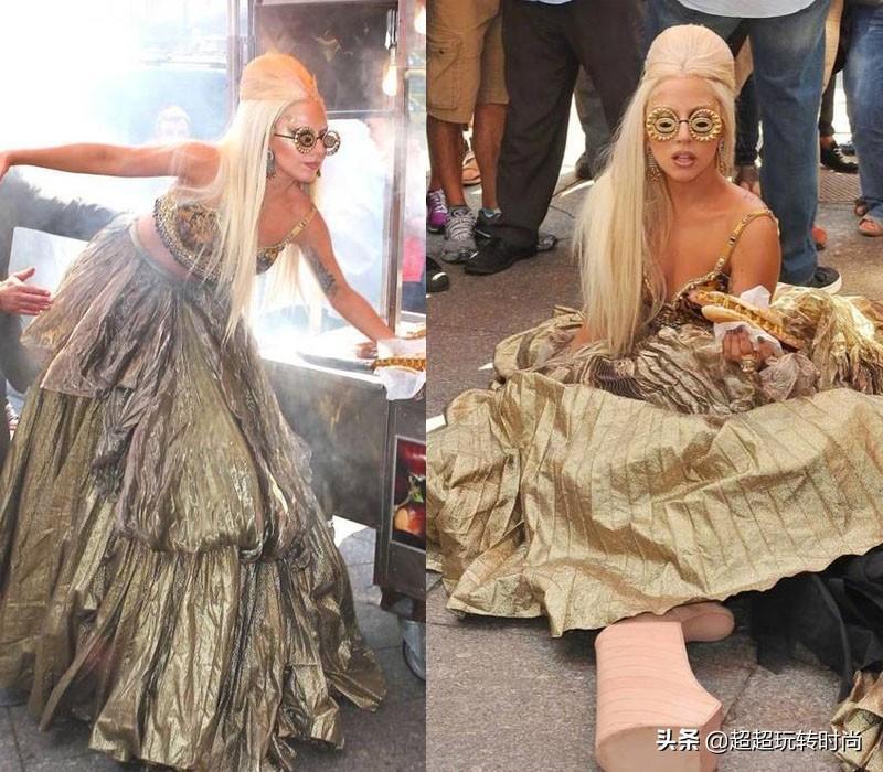先看下LadyGaga的奇葩高跟鞋,LadyGaga的穿搭一直以来常人所不能触及的。她的时尚观念和我们相差甚远,可以说我们是不懂在时尚之巅的她。看这个性的眼镜,和锡纸一般质地的半身裙,这亮眼指数可是飙升。本来以为这已经是亮点之最了,没想到一不小心来个大摔跤,这摔跤姿势也是比较霸气了,再怎么摔跤,我的热狗不能丢。坐在地上的LadyGaga,露出了她的战鞋,小轩都是屏住呼吸的看啊,这是什么奇葩高跟鞋?这底得有20公分吧!难怪会摔跤了。