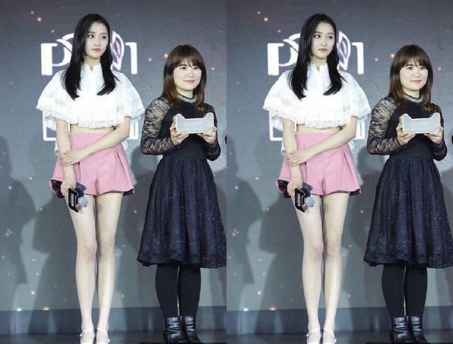旁边的女生是号称四千年的美女鞠婧祎,但是站在关晓彤的旁边全然被碾压,关晓彤简直是躺赢啊,都穿着高跟鞋,但是关晓彤的腿的位置都已经到了鞠婧祎胸那里了,这腿真的是太长了。