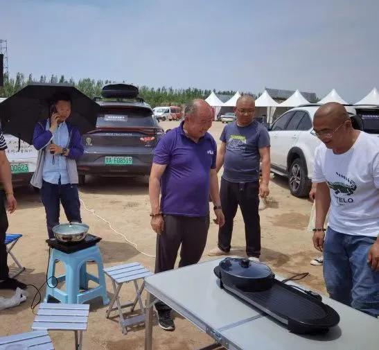 在一路的驰骋中,望着前方的车队脑海里已经浮现陈奕迅的《孤勇者》了。到达呼和塔拉大庆会场之后我们赶紧布置了今天的头等大事——解决午饭问题。这个时候比亚迪新能源车就派上大用场了,因为一辆车自带的外放电功能可以提供最高3.3KW的电力输出,为此我们配了20米的延长线和若干插排,完全不用担心用电问题。于是我们户外烧烤,野外聚餐开始啦。