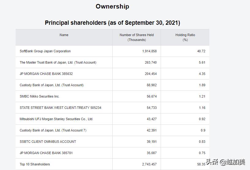 笔者特意查询了软银集团前10的股东名单,具体如下: