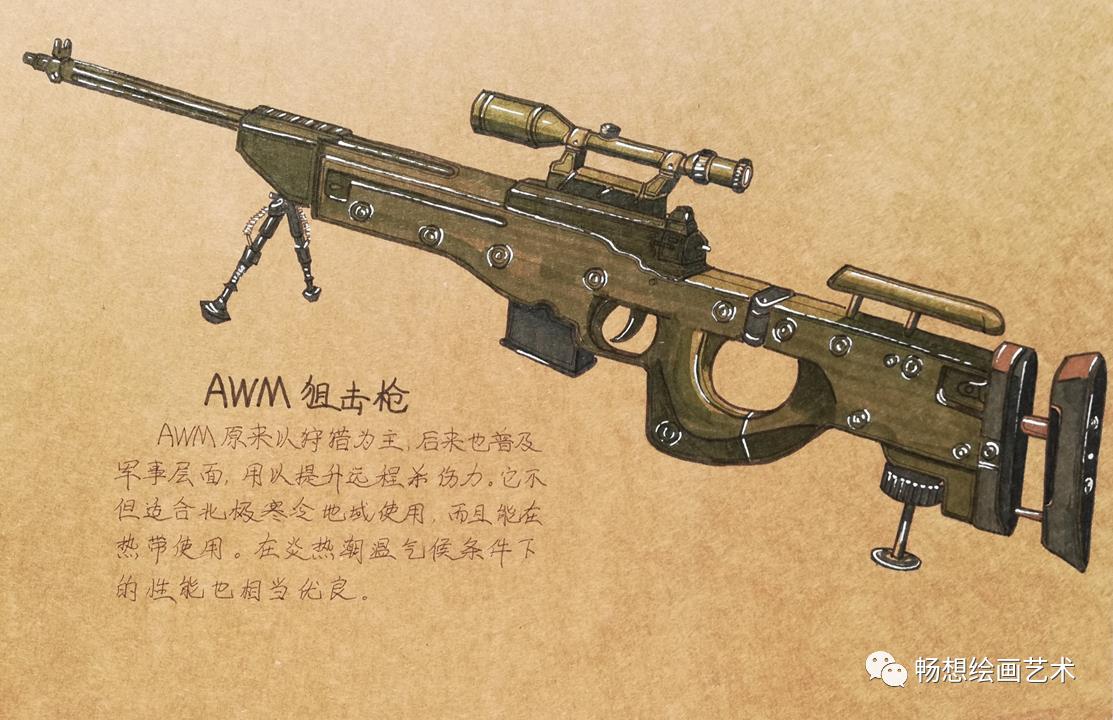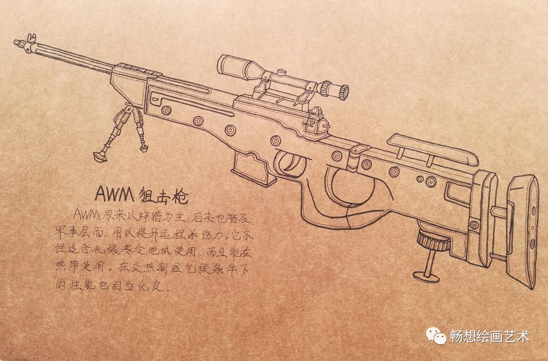 同学们,今天我们来画枪械线描的第九课--AWM狙击枪。
