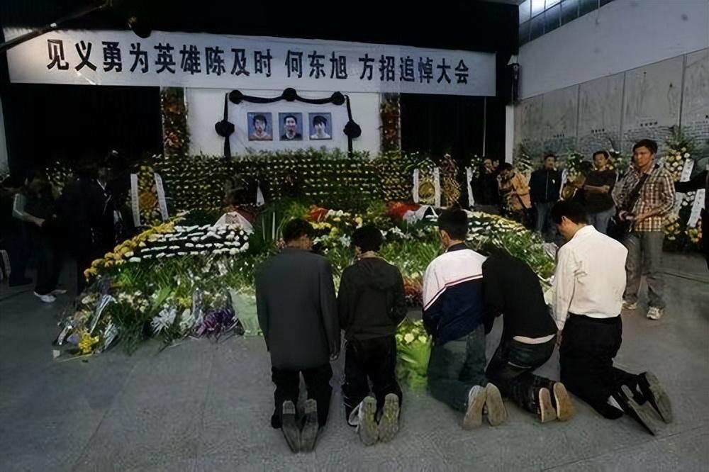 10月28日,三位大学生追悼会,荆州市委副书记傅立民亲自主持,荆州群众自发为他们送行。