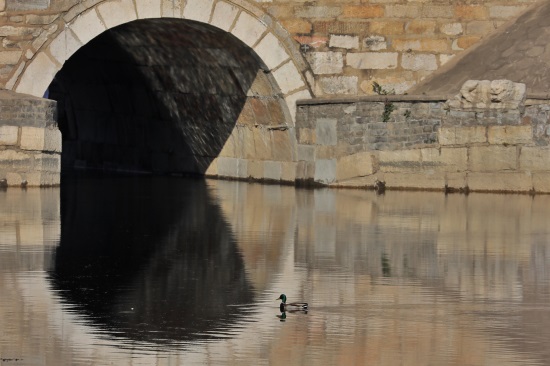 修缮后的老桥将作为一处文物景观,在运河文化带上彰显着文化遗产的魅力和光辉。 图为清淤后的河道引入新水,一只野鸭悠闲地在老八里桥下游弋觅食。 白继开 摄