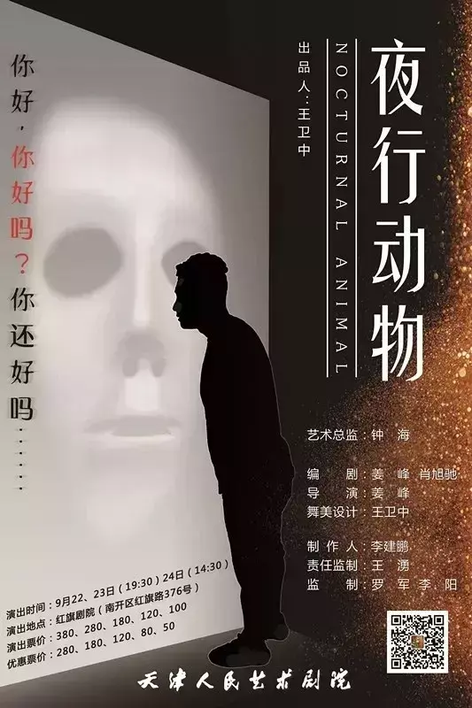 9月22日至24日,天津人艺原创话剧《夜行动物》即将上演。一个比戏剧更精彩更荒谬的现实生活正在剧场静候你的到来。