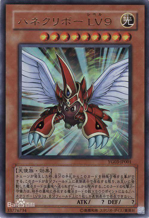 效果:当有连锁发生时,可以从自己手卡把这张卡特殊召唤。只要这张卡在自己场上表侧表示存在,双方发动的魔法卡不送去墓地从游戏中除外。这张卡的攻击力·守备力变成对方墓地存在的魔法卡数量×500的数值。「羽翼栗子球 LV9」在自己场上只能有1张表侧表示存在。