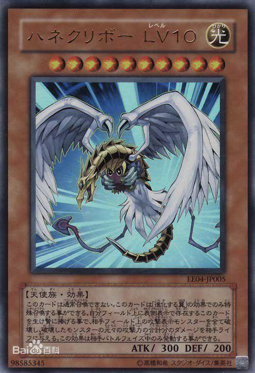 效果:这张卡不能通常召唤。这张卡只能通过「进化之翼」的效果特殊召唤。可以把自己场上表侧表示存在的这张卡作祭品,对方场上攻击表示的怪兽全部破坏,给予对方基本分破坏怪兽的原本的攻击力合计的数值的伤害。这个效果在对方战斗阶段中才能发动。