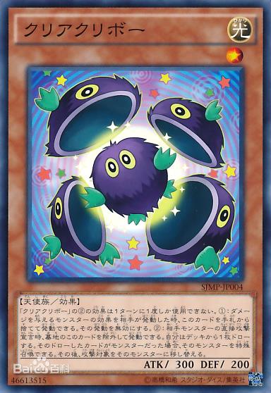 效果:这张卡的攻击力变成「クリバー」的效果从游戏中除外的怪兽的攻击力合计数值。可以把这张卡从游戏中除外,把从游戏中除外「クリボー」「クリバー」「クリビー」「クリベー」「クリブー」各1只特殊召唤。这个效果在对方回合也能发动。