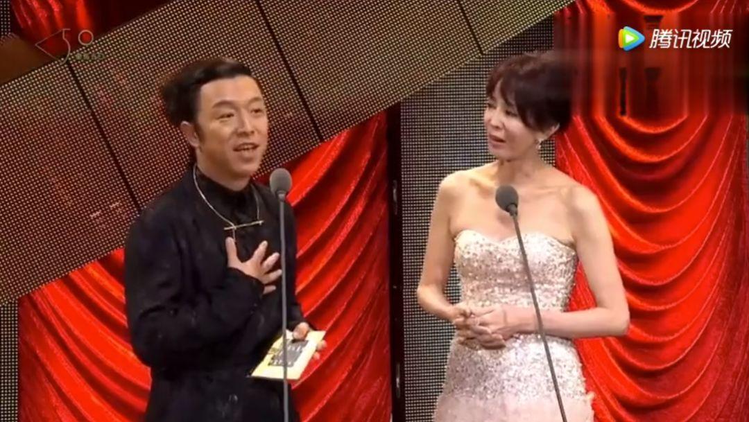 当年金马奖的主持人是黄渤和郑裕玲,一上来,为了活跃气氛,郑裕玲就拿黄渤开玩笑,说黄渤头发怎么吹歪了,是外面风很大吗?