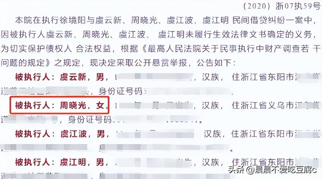 2021年,周晓光夫妇和两个儿子被浙江金华市中级人民法院发出“悬赏追债”,其名下多套房产、豪车被拍卖,但面对庞大的债务,拍卖的这个东西也是不够看的。