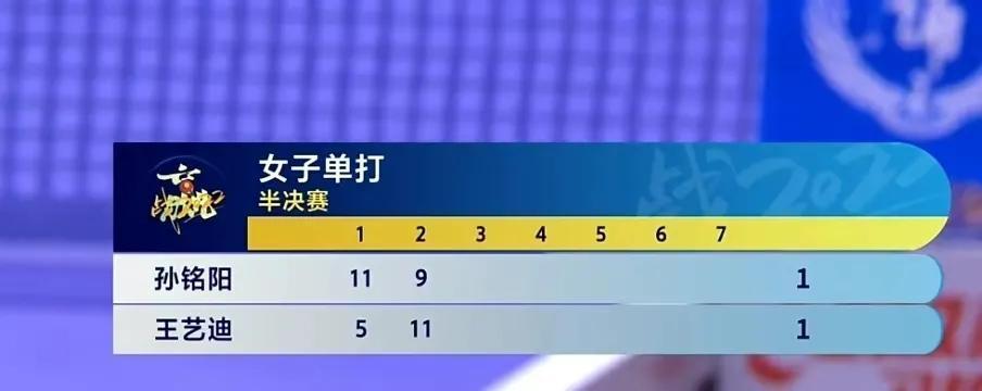 女单半决赛再遇王艺迪,孙铭阳更是不畏强敌,放开手脚,打得王艺迪很是被动,尤其是第三局竟然送王艺迪11:0。