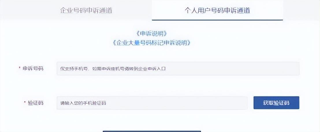 第2步:提交申诉号码和验证码进行申诉。