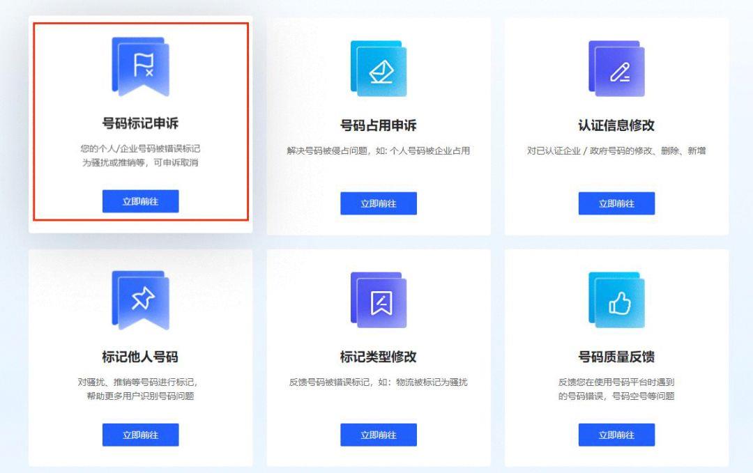 第1步:选择“号码标记申诉”