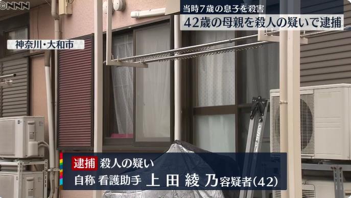 2.日本一母亲捂死7岁儿子被捕 据日本电视台21日消息,因3年前残忍杀害年仅7岁的儿子,日本神奈川县女子上田绫乃日前被捕,材料已于21日送检。据警方调查,上田其他三名幼子皆在年龄很小时死亡。