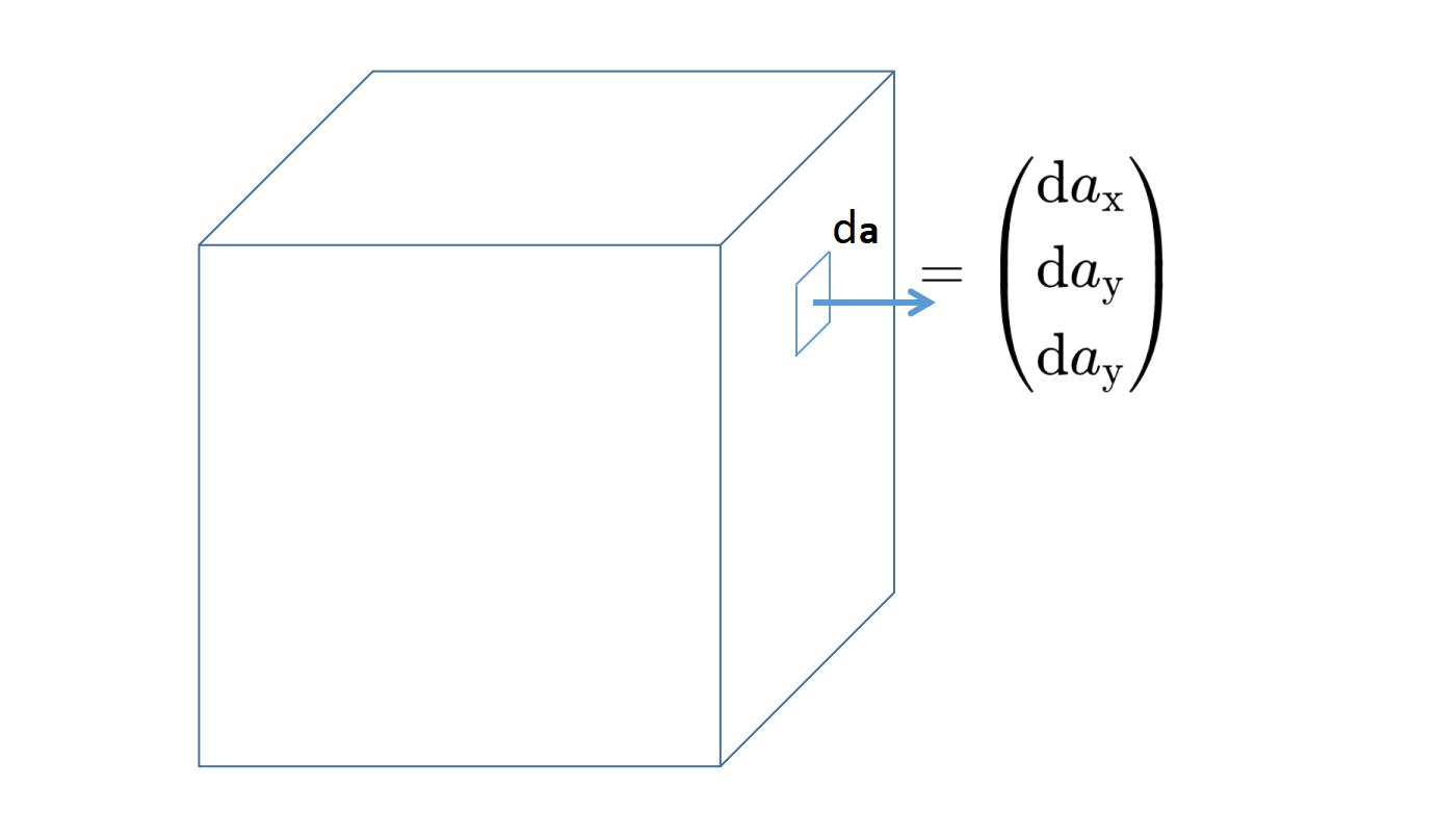 你可能已经注意到,da 元素中的a是加粗的,所以它是一个有大小和方向的矢量。 da元素垂直于表面,并且定义为从表面指向外部。