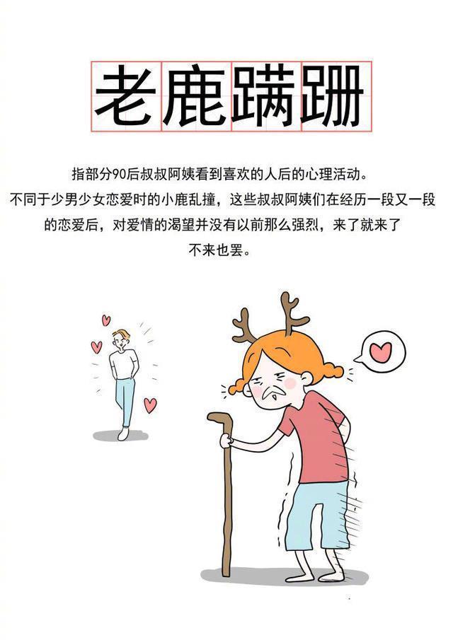 指部分90后叔叔阿姨看到喜欢的人后的心理活动。不同于少男少女恋爱时的小鹿乱撞,这些叔叔阿姨们在经历一段又一段的恋爱后,对爱情的渴望并没有以前那么强烈,来了就来了,不来也罢。