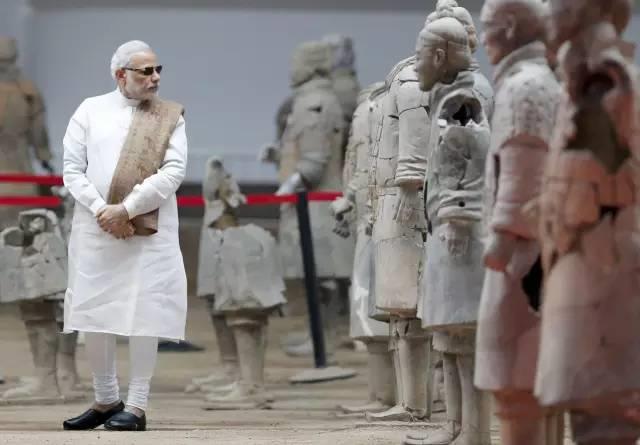 图为莫迪总理在西安兵马俑