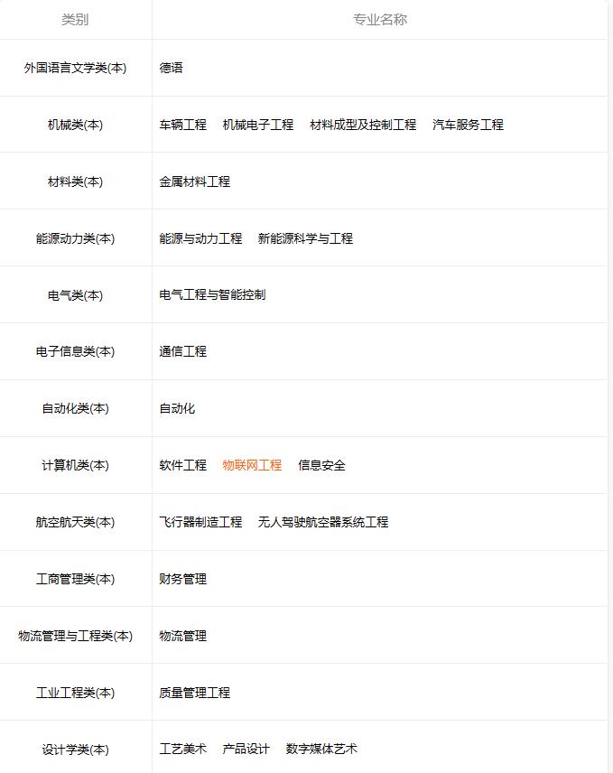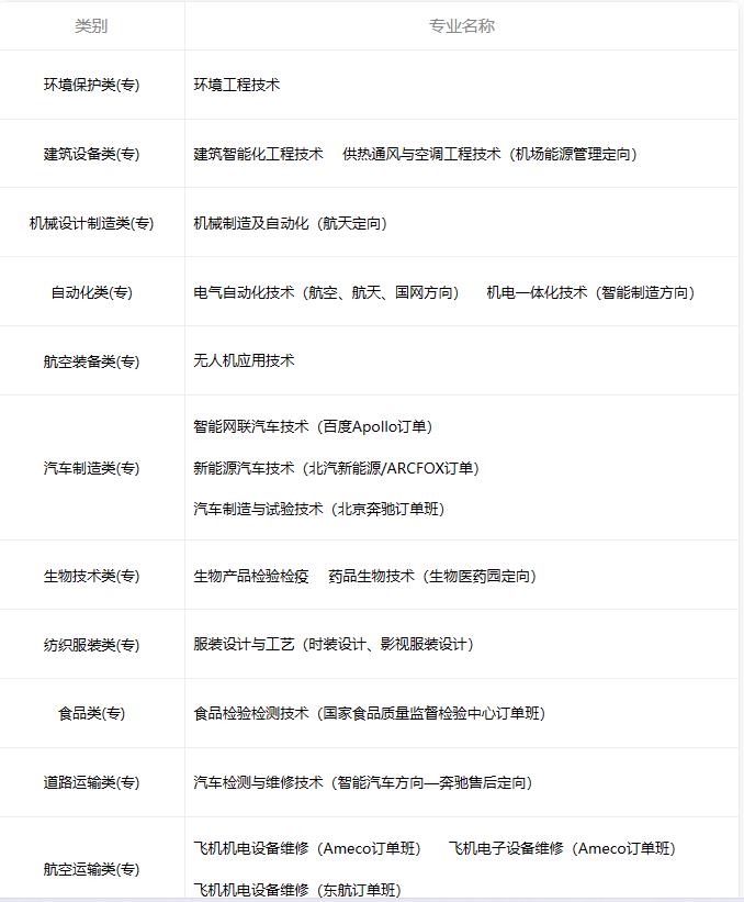 国家重点建设专业:制造技术、航空航天应用技术、自动化技术、汽车应用技术、新材料新能源技术、信息技术、经贸管理、应用语言