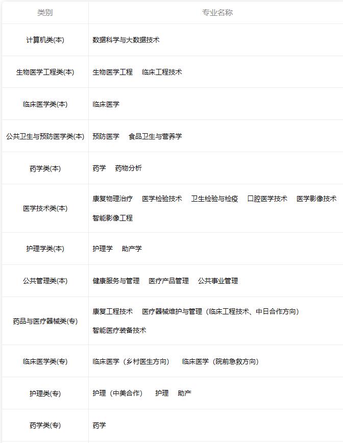 国家重点建设专业:医学影像技术、康复治疗技术、医疗美容技术、护理