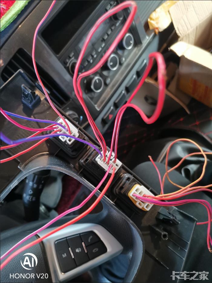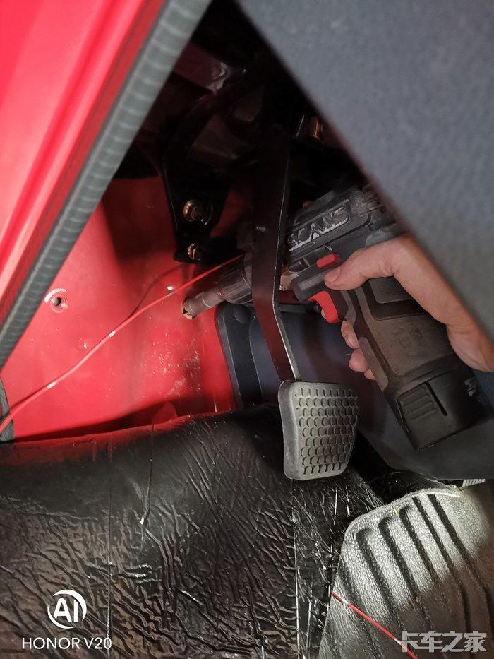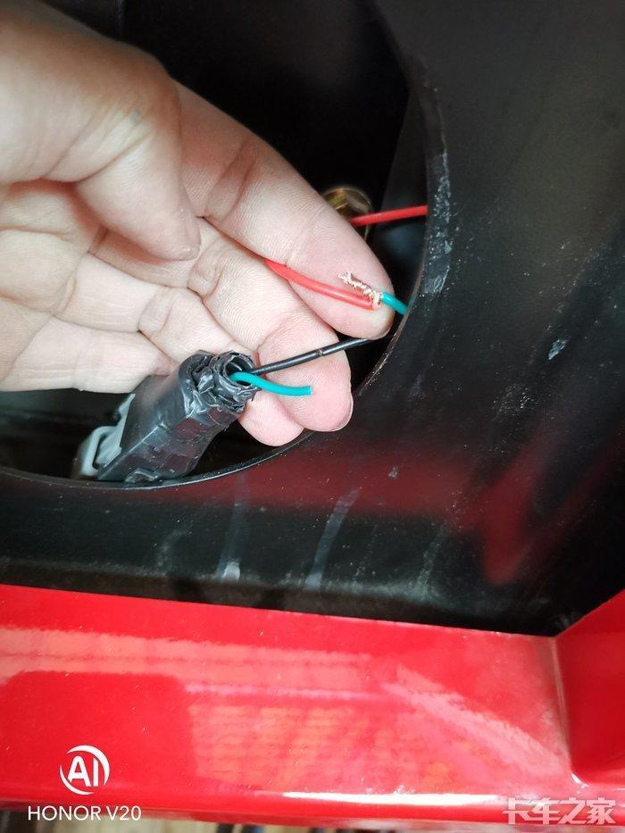 安装好开关后 将开关“正”和“电”的线用电线延长出驾驶室 走线的时候注意避开离合 刹车和油门 顺着走边 别碍事就行
