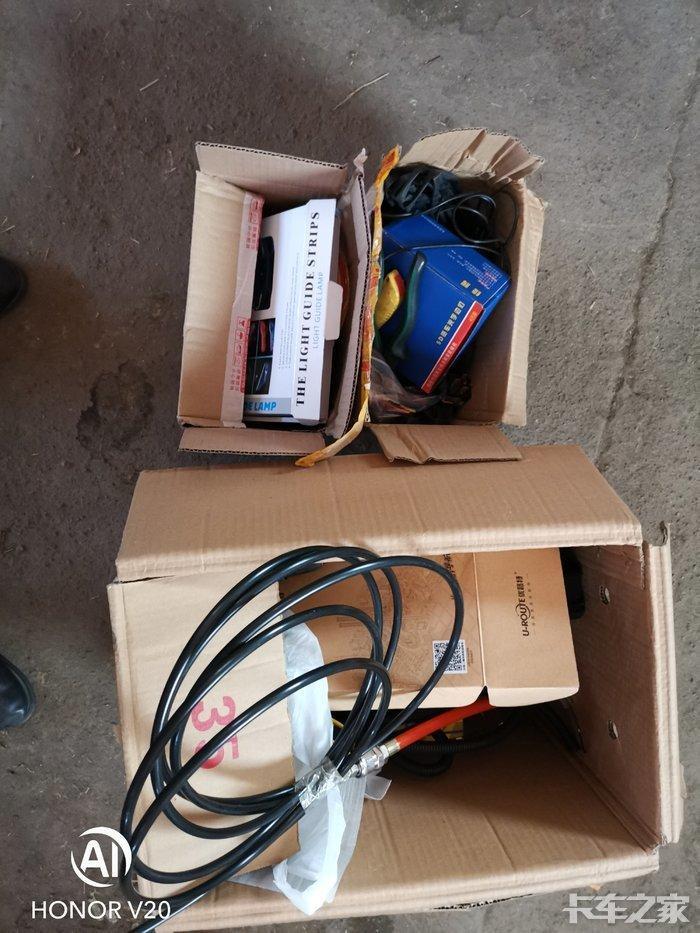 带着一堆东西过去安装 黑色的是气管 气管一头接气喇叭 另一头我自己接了个空压机那种快速接头和取气管连接 所有气路接头一定要缠生料带!切记!