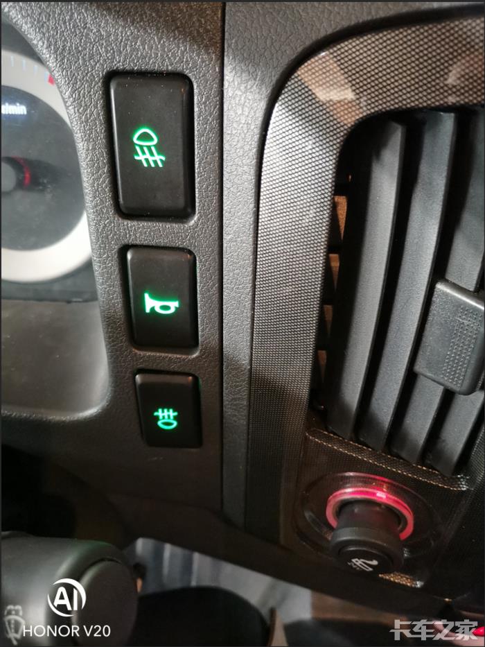 中间的是气喇叭开关 另外两个是我加装的日行灯和后照灯开关
